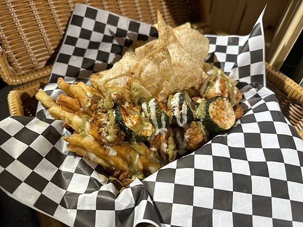 看電影一定要吃點垃圾食物啦,只是這個炸物拼盤是全素的,