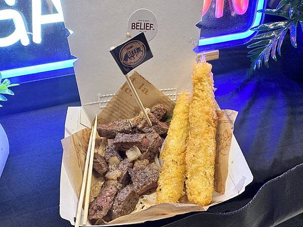 等到晚上時間差不多在出來買看好的炸物拼盤跟牛排。