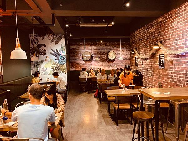店外的裝潢採用單一色的簡約風格,但走入店內則是用磚牆搭配工業風吊燈的酒窖式風格