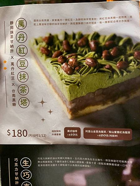 在店內可以品嘗到美味的限定甜點"生巧克力塔"、"萬丹紅豆抹茶塔"