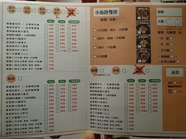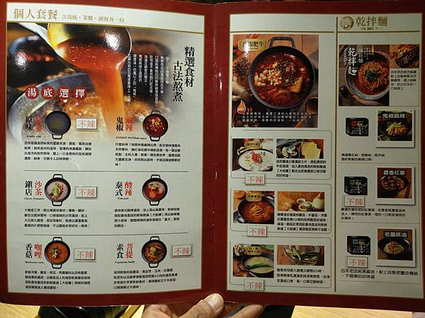 向服務員點完餐後看到桌上小小的立牌貼心的教學著不同鍋底的煮法教學