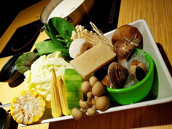 火鍋基本的菜盤送上來後,發現居然還有幾顆蛤蠣