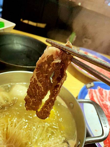 不同於安格斯霜降,油花的分佈有種厚實感,鮮紅的肉質佔據了主要的色調
