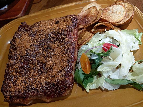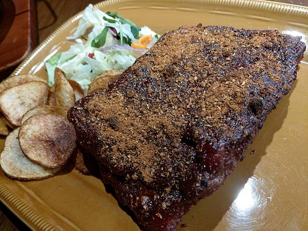 整塊超大塊的肋排直接放在盤子裡端上桌不囉唆(押韻)